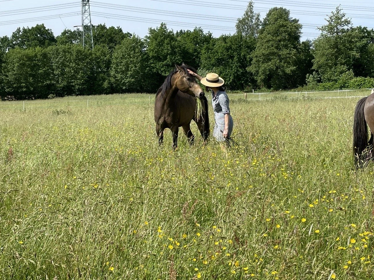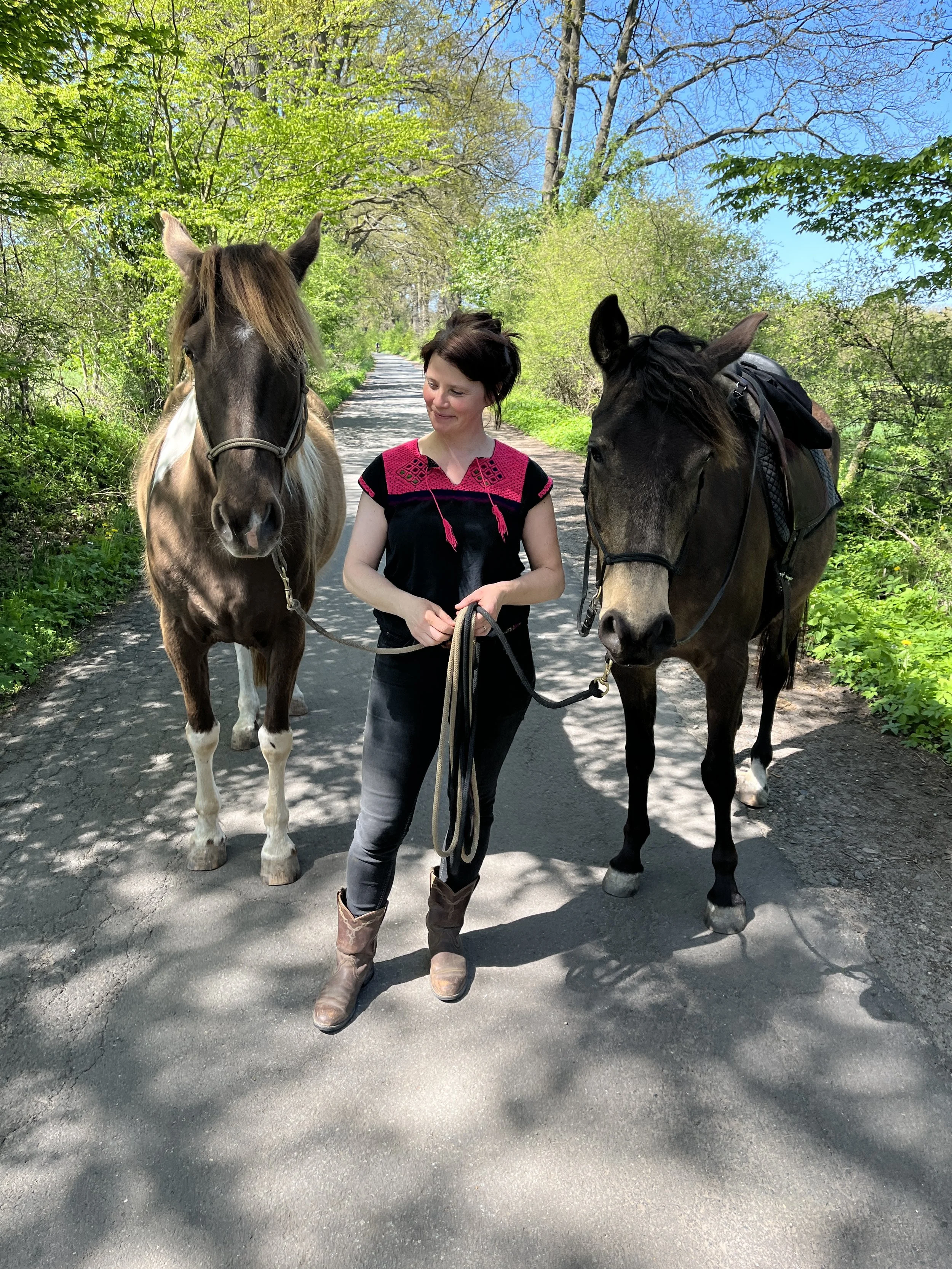 «Pferde sind seit meiner Kindheit wichtige Begleiter an meiner Seite. Als neunjähriges schüchternes Mädchen bin ich mit meinem Pony Taban ohne Sattel stundenlang alleine durch den Wald geritten und habe mich stark und mutig gefühlt. Die Erkenntnis, welchen Einfluss Pferde auf mich hatten, welche Kraft sie mir tatsächlich gegeben haben, kam natürlich erst viel später. Mein eigener Sohn war als Kleinkind eher schreckhaft und unsicher. Ich suchte nach einem Pflegepony und fand „Whiskey“ - ein Shetlandpony. Wir sind oft stundenlang zu dritt spazieren gegangen. Mein Sohn legte seine anfängliche Unsicherheit zunehmend ab, als er merkte, dass dieses (für ihn) große Tier bereit war, ihm zu folgen. Er erkannte seine Selbstwirksamkeit. Dass er irgendwann, Monate später, im Galopp ohne Sattel mit seinem Bogen einen Pfeil aufs Feld hinaus schießen würde, hätte aber selbst ich nie erwartet. Das war für uns alle eine überwältigende Entwicklung. Mit Whiskeys Unterstützung ist er in kleinen Schritten immer wieder über sich hinaus gewachsen und aus dem unsicheren kleinen Jungen ist zwar kein Pferdenarr, aber ein selbstbewusster Jugendlicher geworden, der noch immer eine ganz eigene Verbindung zu Pferden hat.»